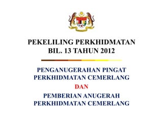1 pegawai tetap yang telah disahkan dalam perkhidmatan. Pasca Perkhidmatan Tahun PP Bil132012 Penganugerahan Pingat Perkhidmatan Cemerlang Dan Pemberian Anugerah Perkhidmatan Cemerlang. Pingat Perkhidmatan Cemerlang PPC.